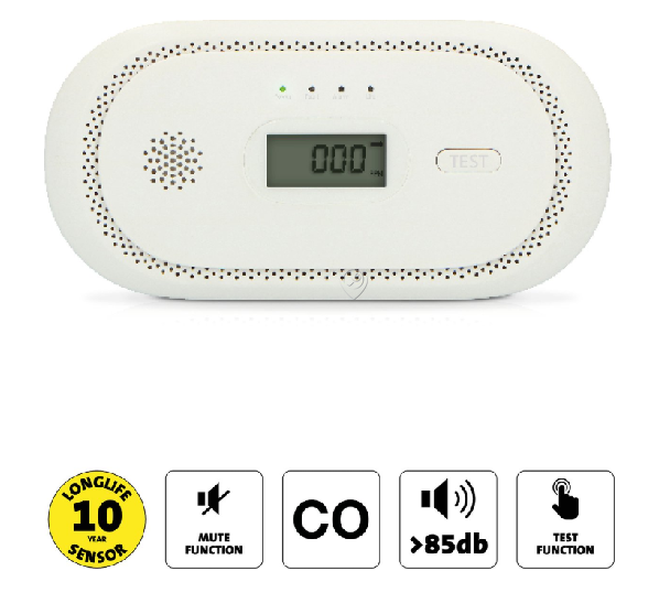 Alecto - Detector de monoxid de carbon cu senzor de 10 ani și ecran - COA2650