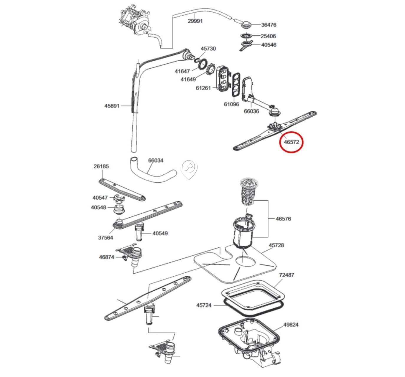 • Bratul pulverizator de apă superior este un accesoriu esențial pentru mașinile de spălat vase de la branduri de renume precum Whirlpool, Indesit, Smeg, Franke și Gorenje.