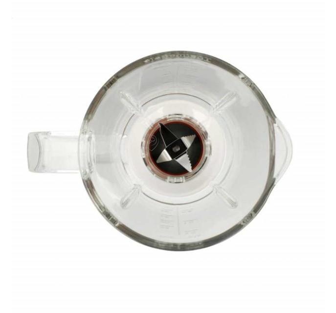 • Această cană este dotată cu capac și cuțit, fiind un accesoriu esențial pentru utilizarea eficientă a robotului de bucătărie Bosch.