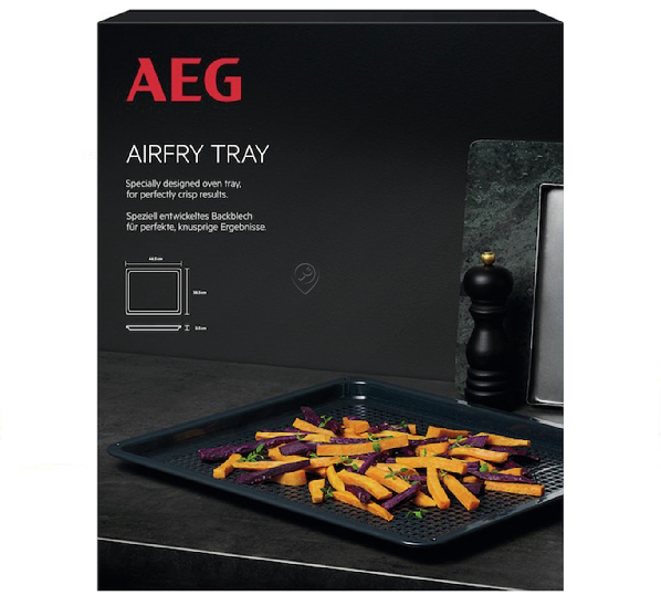 • Tava Airfry Electrolux 465 x 385 x 25 mm este ideală pentru a obține legume și cartofi prăjiți crocanți cu mai puțin ulei, datorită perforațiilor care asigură circulația optimă a aerului.