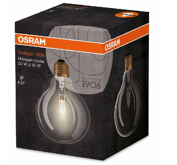 • Becul halogen Osram Vintage 1906, model glob G95, oferă un design retro elegant și o lumină caldă, perfectă pentru crearea unei atmosfere confortabile.
