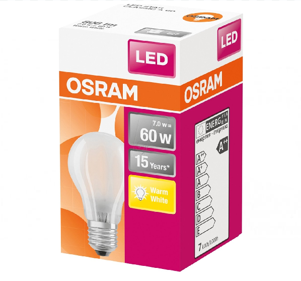 • Becul LED retro-fit Osram A GL FR 60 oferă o iluminare eficientă și durabilă, consumând doar 7W pentru a înlocui tradiționalele becuri de 60W.