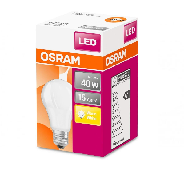 • Becul LED Osram retrofit clasic A FR 40, cu o putere de 5.5W și o temperatură de culoare de 2700K, oferă o lumină caldă, perfectă pentru un ambient plăcut.