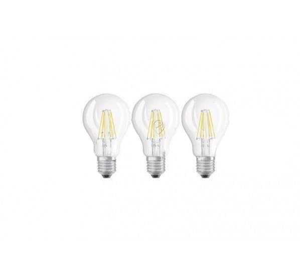 • Setul Osram LED retrofit clasic A 60 include trei becuri economice de 7W, echivalente cu 60W, oferind o lumină caldă și plăcută de 2700K.