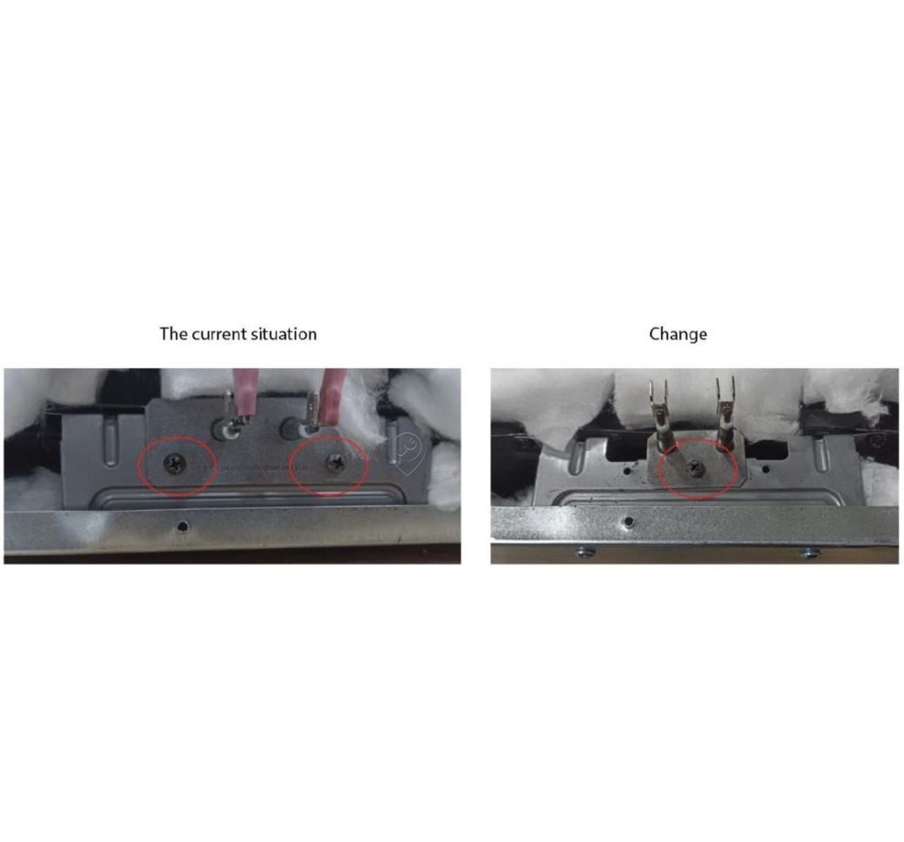 • Dacă nu există o gaură în mijlocul foii de conectare a rezistenței pentru minicuptor, se poate realiza o conexiune prin găurirea unei găuri cu diametrul de 2,5 - 3 mm și utilizarea șurubului existent.