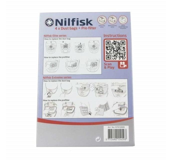 • Set de saci pentru aspirator Nilfisk Original 107412688, 4 bucăți.