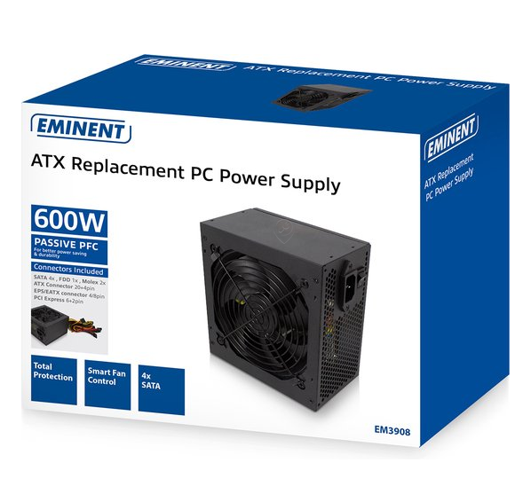 Sursă de alimentare de înlocuire Eminent EM3908 ATX 600W PPFC, v3.1, 3xSATA - EM3908.