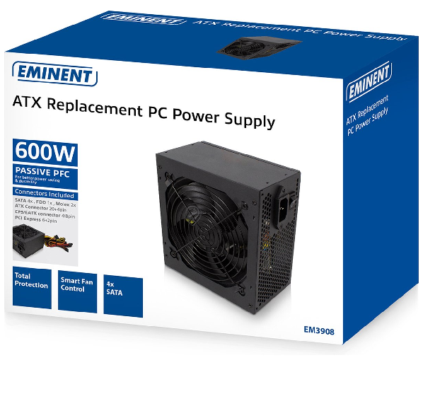 • Sursa de alimentare Eminent EM3908 ATX 600W este soluția ideală pentru înlocuirea eficientă și fiabilă a sursei vechi.