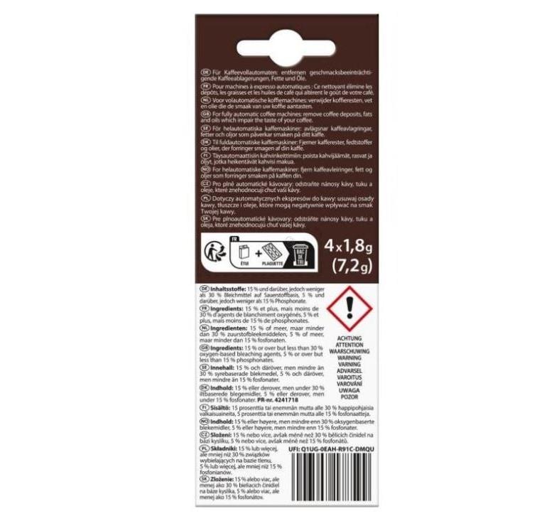 Soluția de curățare Melitta îndepărtează depunerile de cafea, grăsimile și uleiurile care sunt dăunătoare pentru gustul cafelei datorită puterii oxigenului activ. Tabletele de curățare vor acționa blând și temeinic asupra celor mai încăpățânate depuneri de cafea.