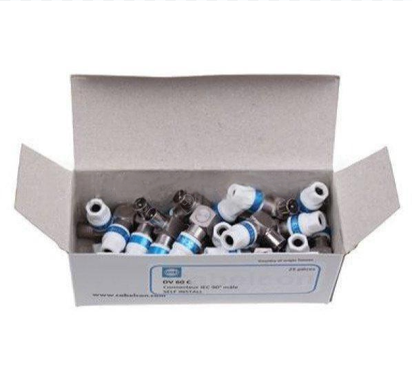 Triax - Conector IEC masculin la 90° unghi drept, auto-instalare, cutie cu 25 de bucăți - TR360939