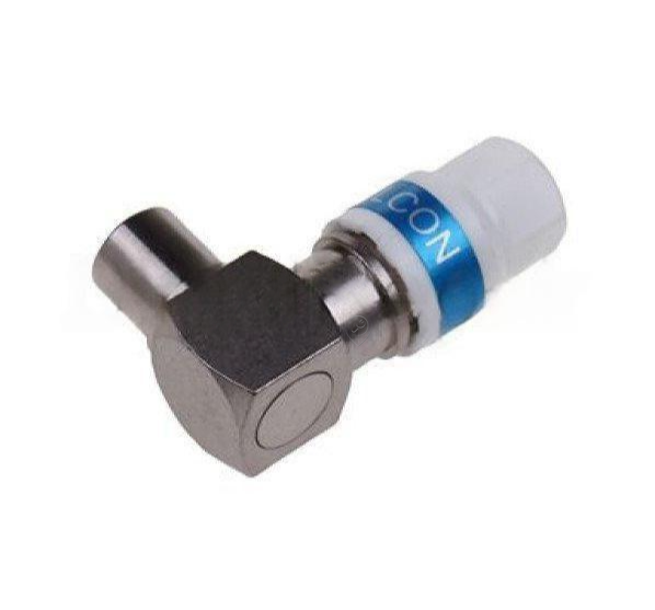 • Conectorul Triax IEC masculin la 90° unghi drept, cu auto-instalare, este soluția ideală pentru conectarea eficientă și compactă a echipamentelor TV, audio și video.