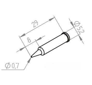 • Vârf de lipit ERSADUR fără plumb, compatibil cu letcoanele i-TOOL, i-TOOL Nano și i-TOOL Pico, modele 0100CDJ, 0120CDK, 0130CDK, cu vârf subțire de 0.7 mm (0.028 inchi).