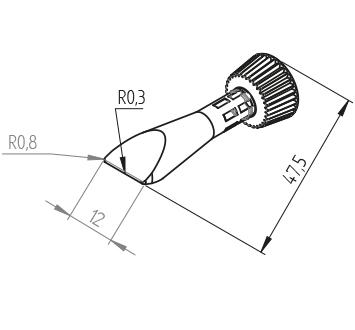 • Formă daltă, conică, cu diametrul de 12,0 mm (0,472 inchi).
